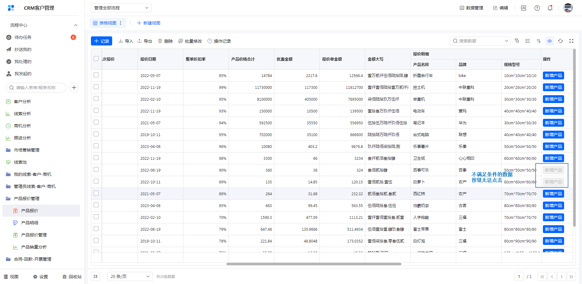 设置条件后,在使用时,只有满足条件的数据可以点击按钮:
