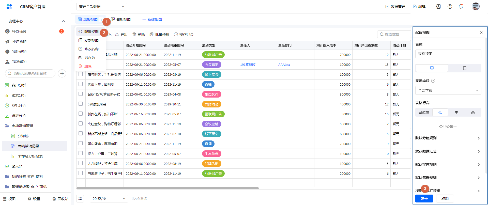 | 表格视图 | 以表格的形式展示数据,数据展示效率最高的一种视图。需要一次性查看多条数据时可以使用表格视图 |