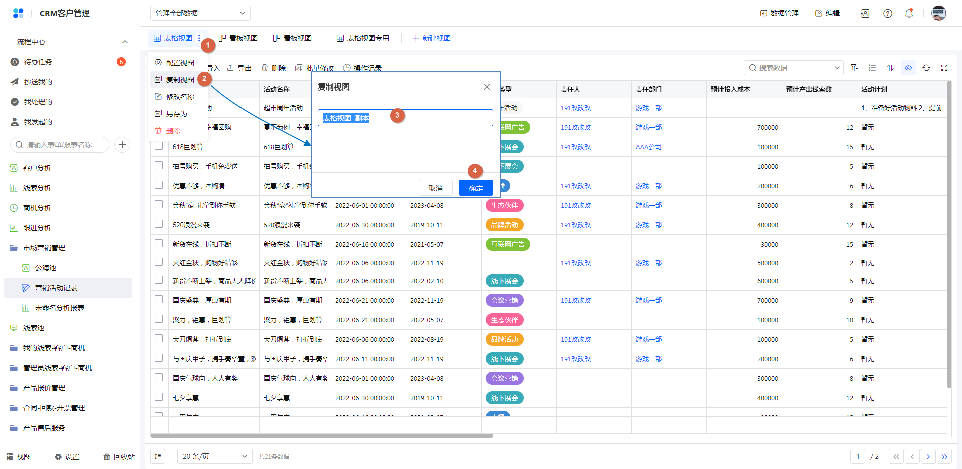复制视图,视图的权限(公开视图/个人视图)不可修改。