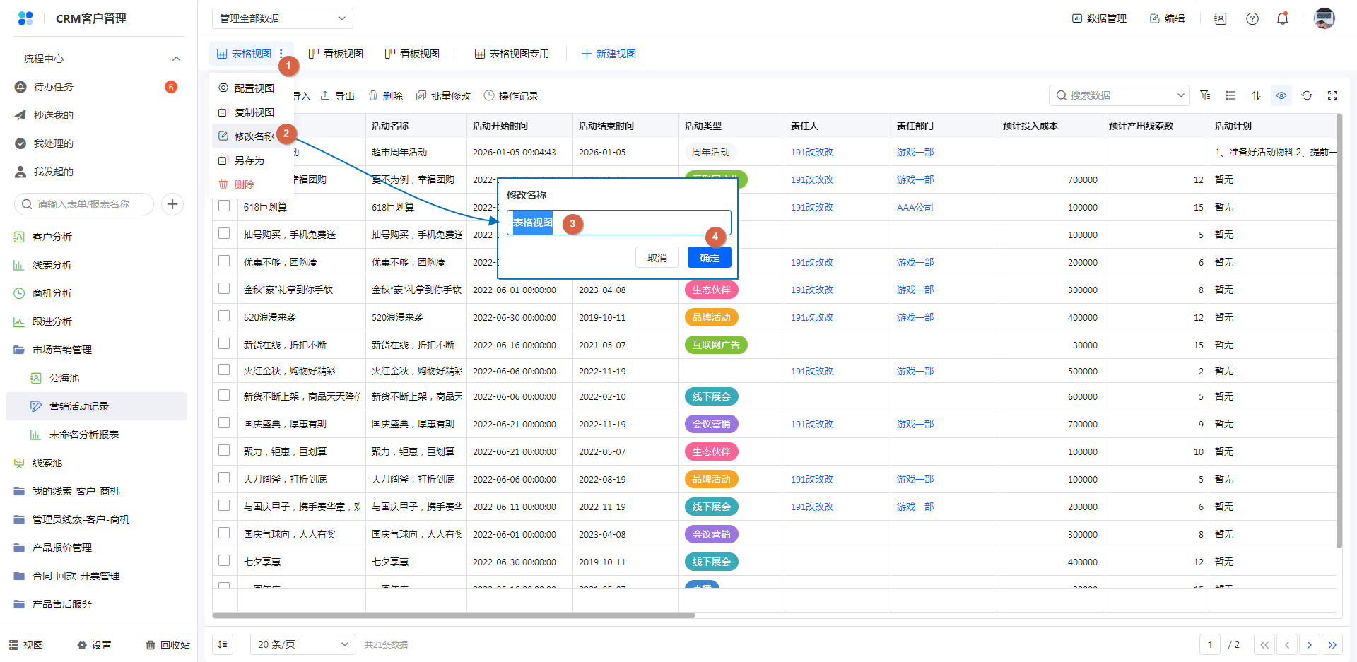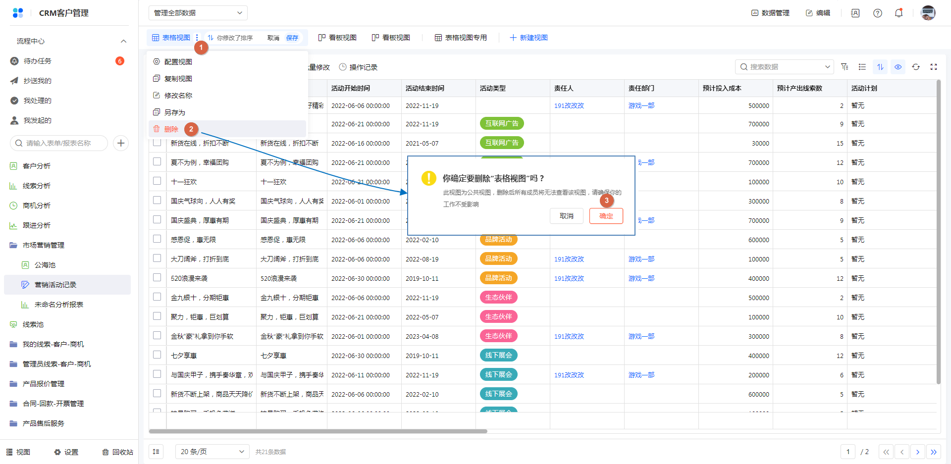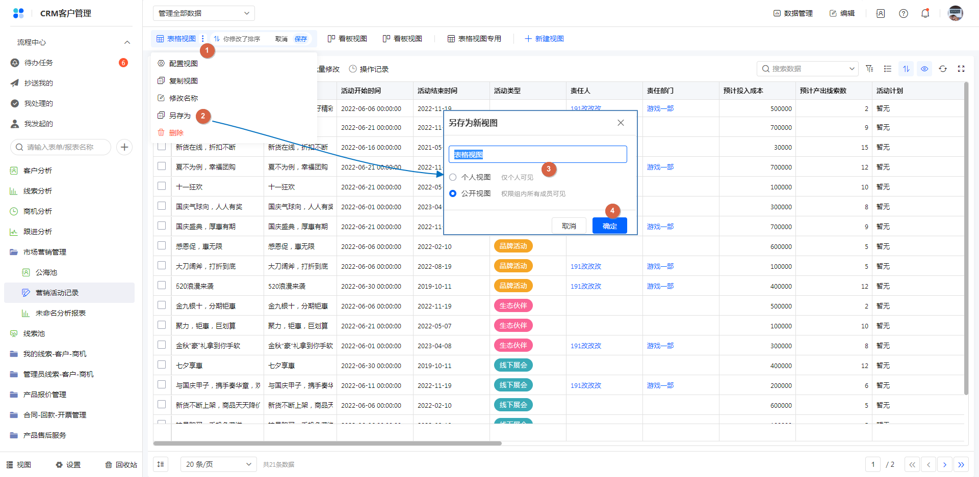 访问视图,视图内容做了变更时,可以另存为一个新视图,且可以修改视图为公开视图/个人视图。