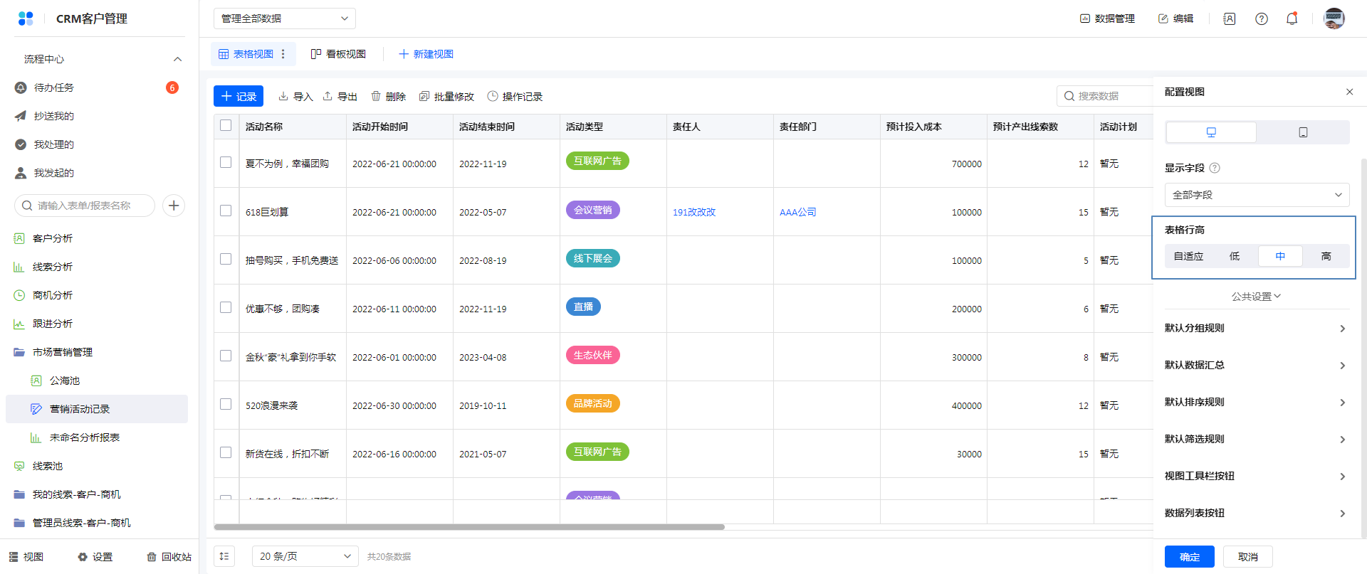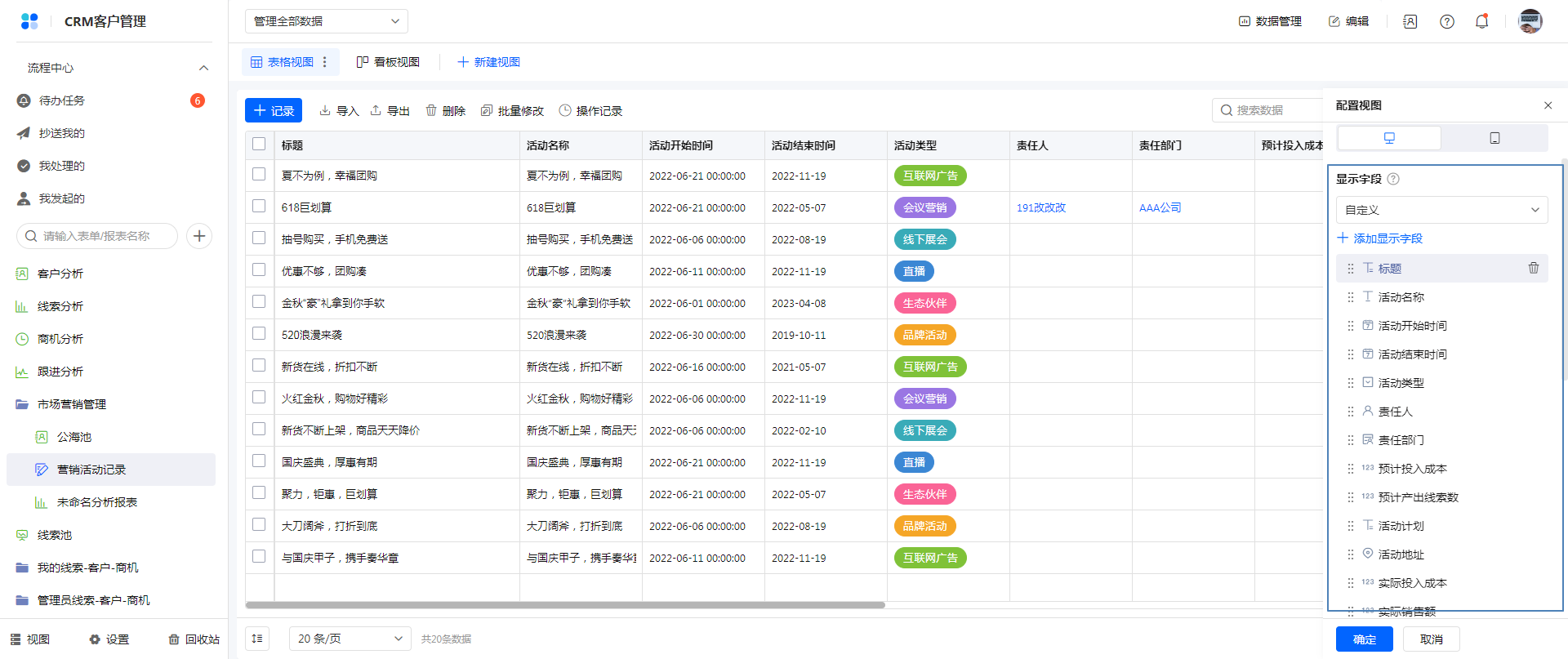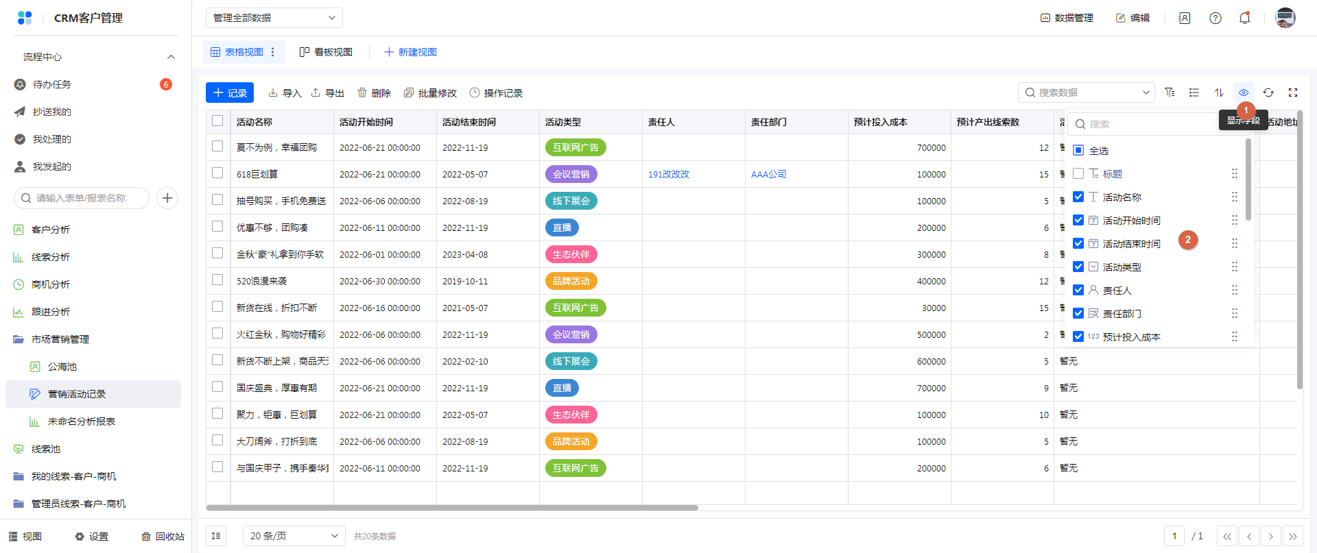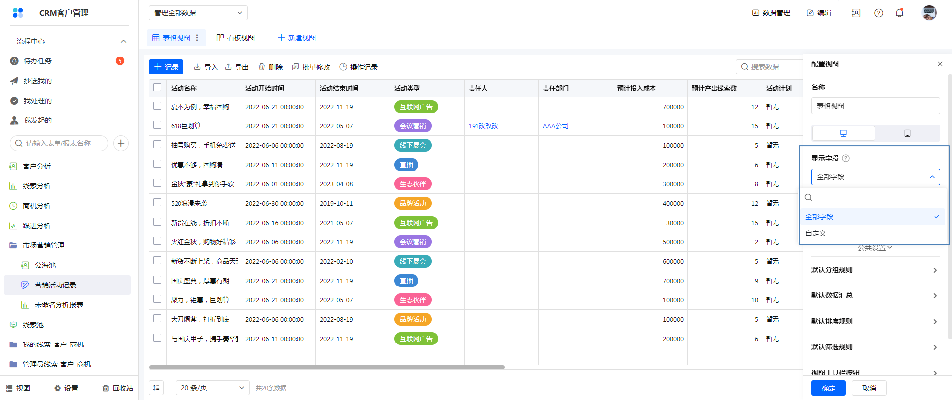 2)每个成员只能看到自己权限内的字段,且可以在查看数据时另行设置显示字段,不受视图设置影响。