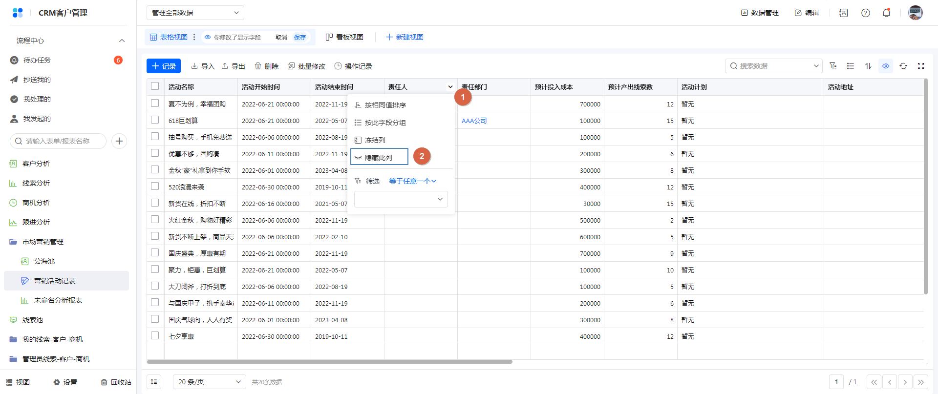 方式三:权限组访问时,表格表头字段右侧菜单,隐藏字段。