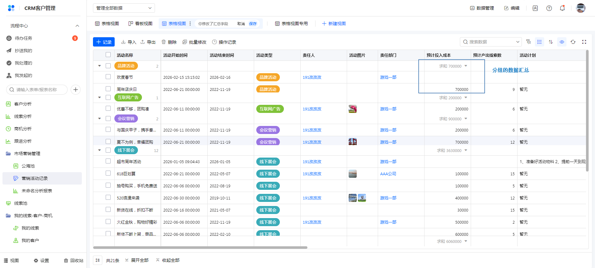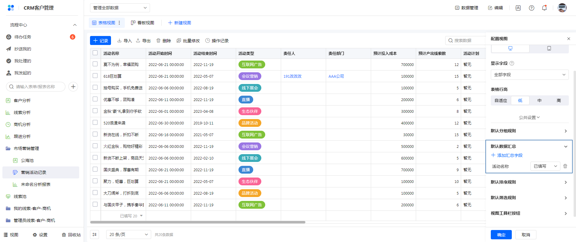 方式一:通过视图配置修改数据汇总字段。