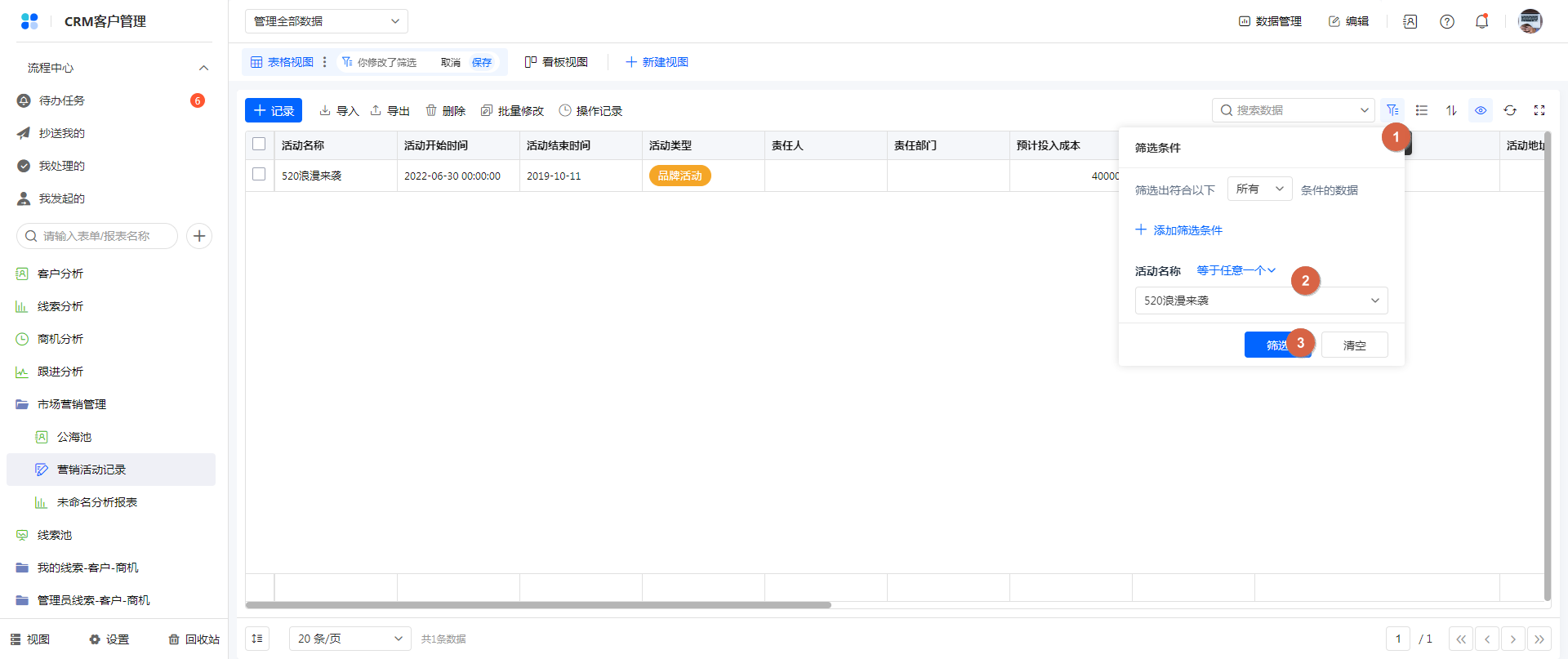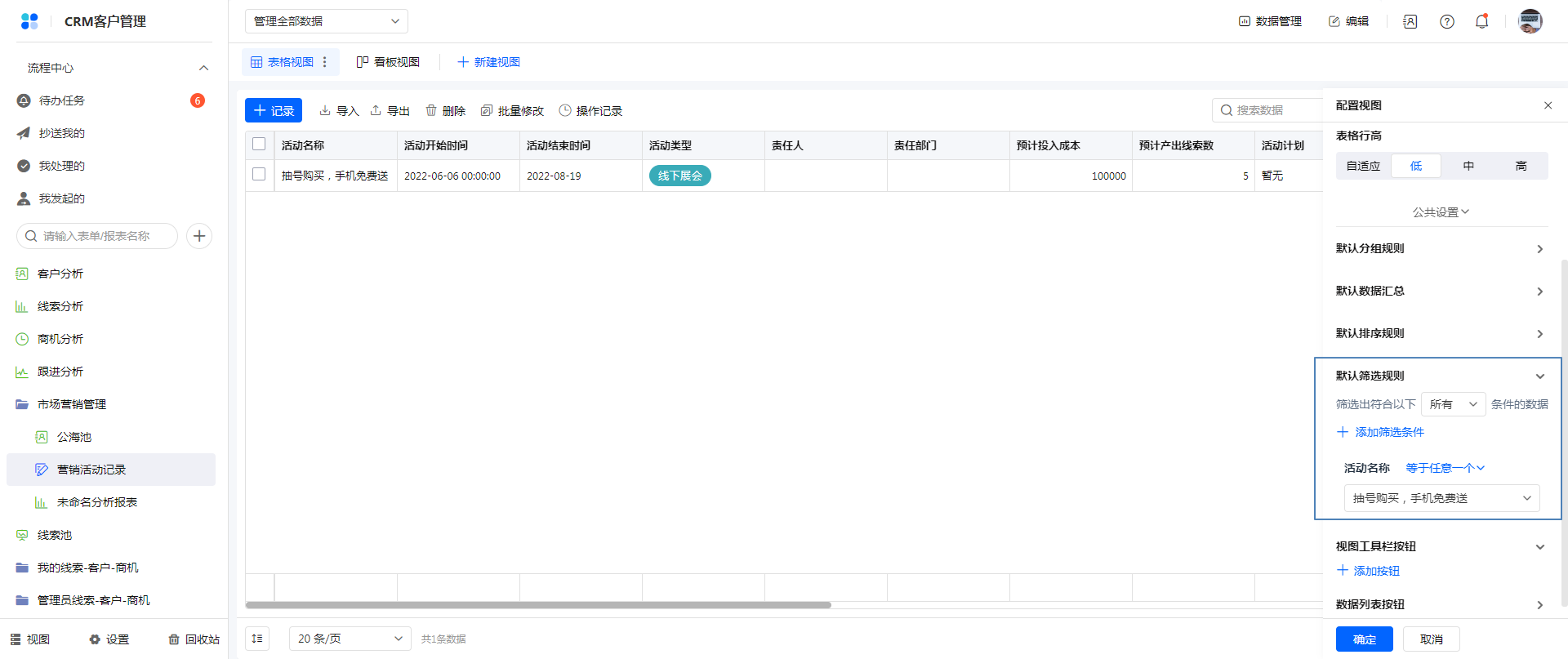 方式一:通过视图配置页设置筛选条件。