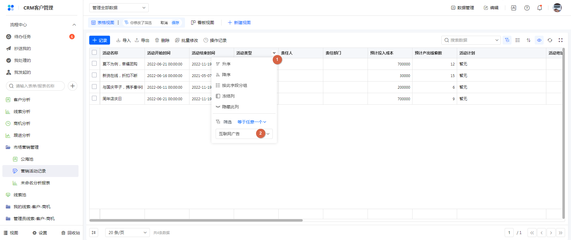 方式三:权限组访问时,表格表头字段右侧菜单,设置筛选条件。