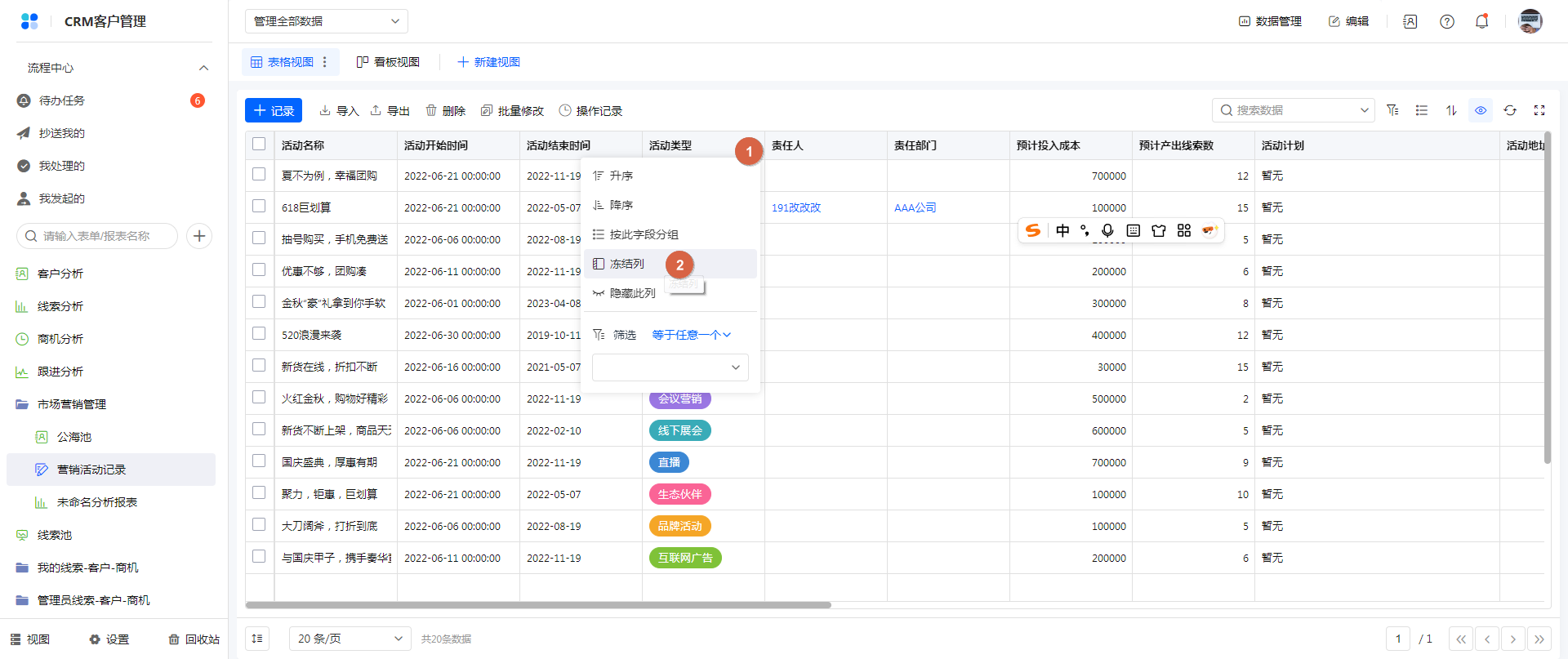 当表格字段过多时,可以设置冻结列,方便查看数据。