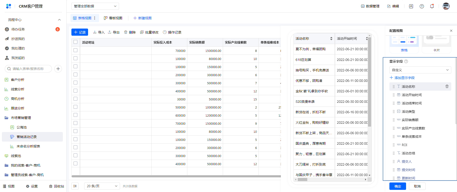 选择自定义字段后,点击「添加显示字段」可以设置需要默认显示的字段: