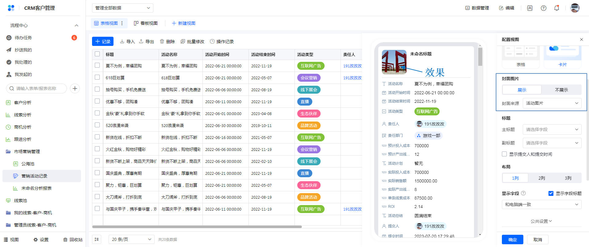 移动端表格视图 卡片样式时,支持设置封面图片,当选择展示时,在数据卡片上方显示图片。