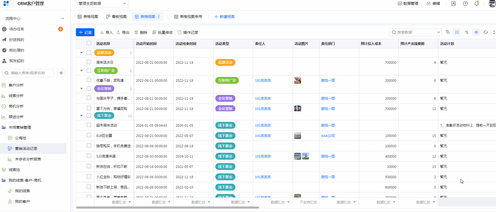 - 系统字段不支持数据汇总。