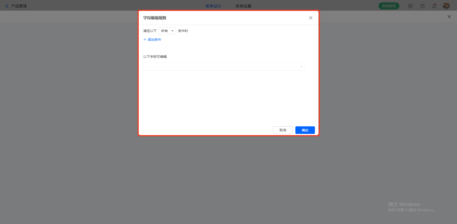 一个字段编辑规则可添加多个条件。多个条件间的逻辑关系可以是满足所有或者满足任意一个。